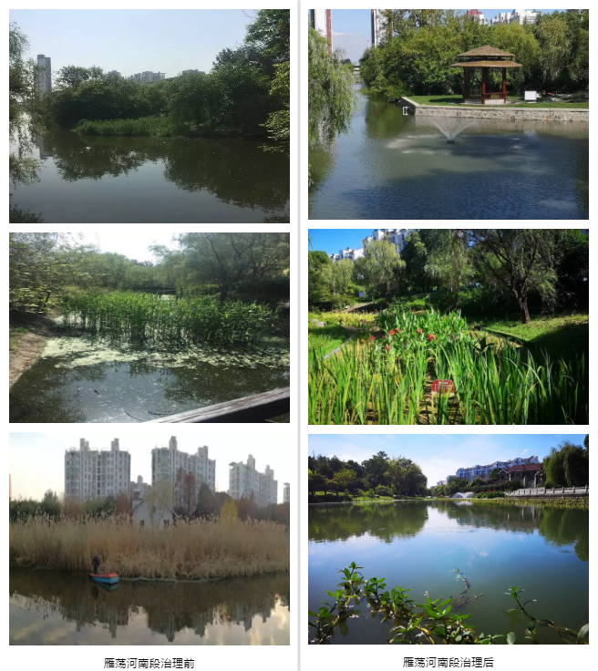 薛家鎮(zhèn)人口密集,水網(wǎng)密布,水系發(fā)達(dá),大小河道總長約38千米。伴隨社會(huì)經(jīng)濟(jì)發(fā)展,河道水質(zhì)一度惡化,碎片化治理河道效果不明顯,河網(wǎng)水質(zhì)容易反彈。維爾利集團(tuán)水處理團(tuán)隊(duì)承接了鳳凰河和雁蕩河南段水環(huán)境綜合提升工程的設(shè)計(jì)和施工。通過外源截污、河道底泥治理、水動(dòng)力改善、生態(tài)系統(tǒng)修復(fù)等多種工程組合措施,全面改善水環(huán)境質(zhì)量