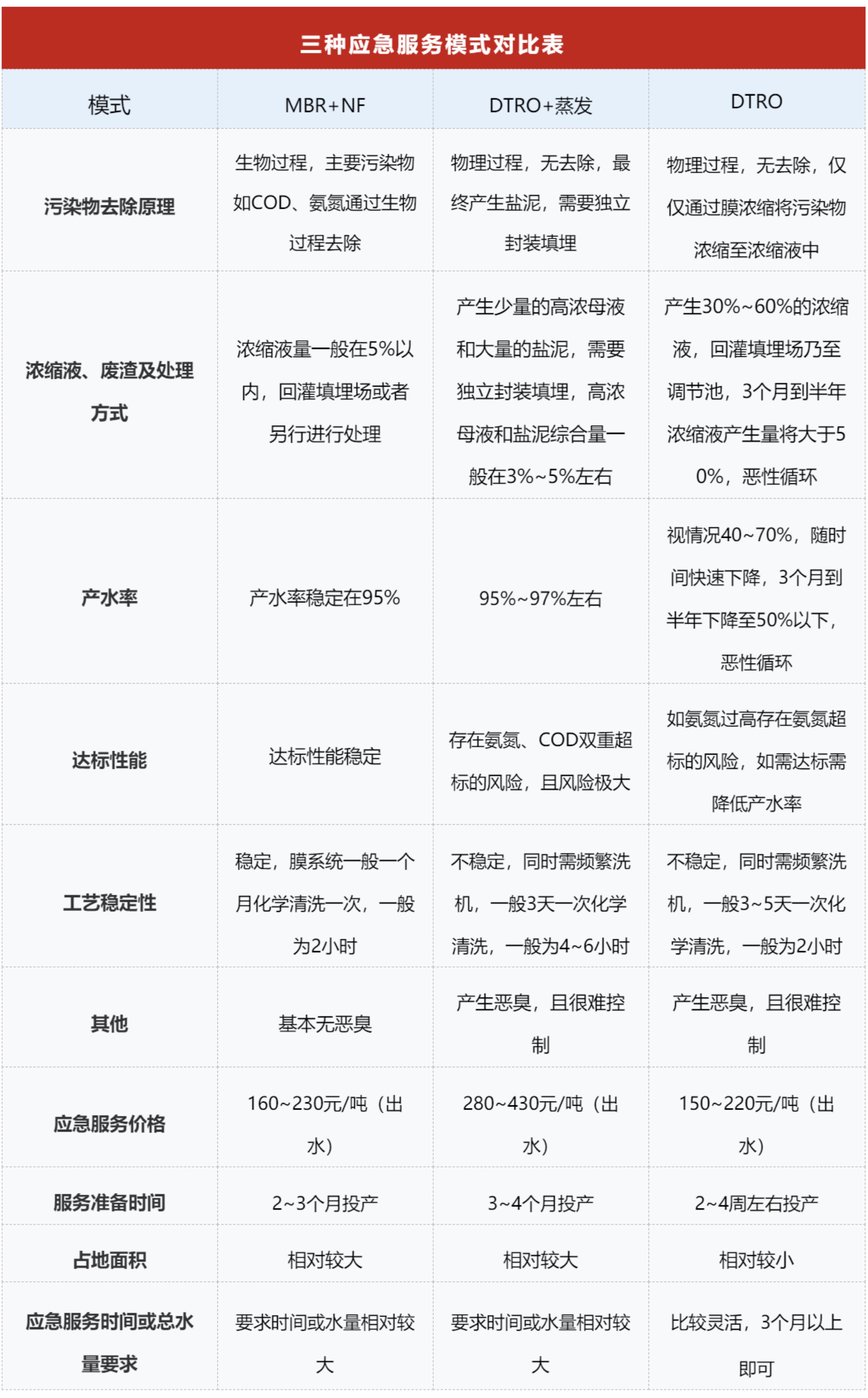 目前滲濾液常見的應(yīng)急服務(wù)模式如下: