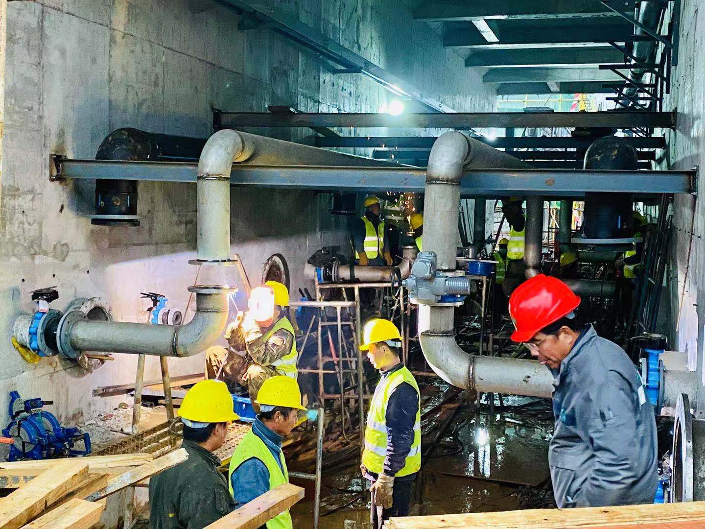 為保證工作順利推進,在現(xiàn)場施工條件復雜、工期緊張、施工難度大的情況下,集團領(lǐng)導多次親臨現(xiàn)場指導工作,統(tǒng)籌規(guī)劃,協(xié)調(diào)各方,帶領(lǐng)項目部同事因地制宜,因時制宜,有序安排設(shè)備材料進場。在與土建工作存在交叉作業(yè)時,全體項目部同事不畏艱苦,積極創(chuàng)造工作面,團結(jié)協(xié)作,奮勇直前,順利實現(xiàn)業(yè)主的節(jié)點計劃。