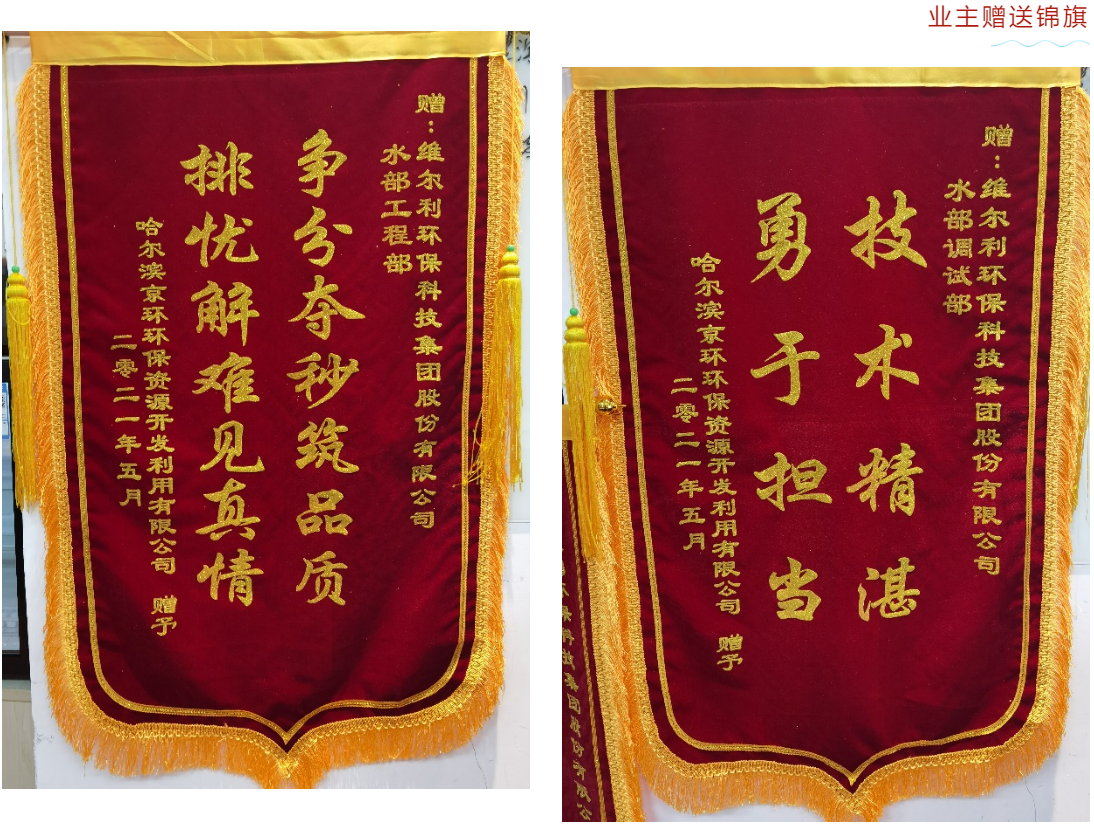 “哈爾濱京環(huán)環(huán)保資源開發(fā)利用有限公司廢水處理站技術(shù)改造項(xiàng)目”處理規(guī)模為600t/d,主體工藝路線為“除渣、絮凝沉淀+厭氧+膜生物反應(yīng)器(MBR)”,維爾利集團(tuán)負(fù)責(zé)外置式MBR系統(tǒng)改造設(shè)計(jì)。在天氣惡劣、土建延遲交安的情況下,集團(tuán)項(xiàng)目團(tuán)隊(duì)勇?lián)厝危茖W(xué)組織、精心部署,順利完工,業(yè)主方特贈(zèng)錦旗表示肯定。