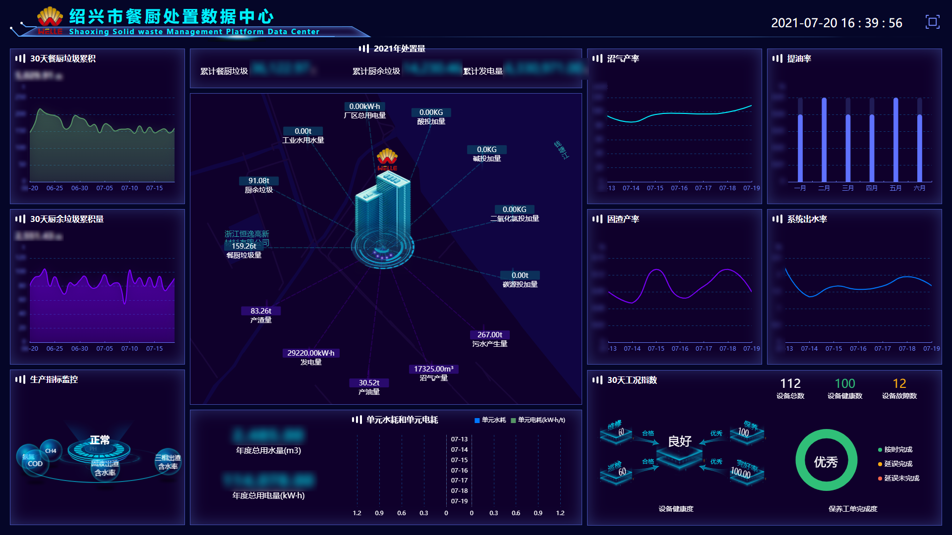 項目使用由維爾利集團建設的全自動化、智能化、數(shù)字化的運營管理系統(tǒng),通過中控指揮中心的餐廚垃圾全生命周期大數(shù)據(jù)賦能平臺,可對餐廚垃圾處理全過程涉及的人員、收運車輛、設備、生產(chǎn)系統(tǒng)和各類事件進行集中管控,并在指揮中心的大屏實時顯示收運車輛和處置廠區(qū)的情況。